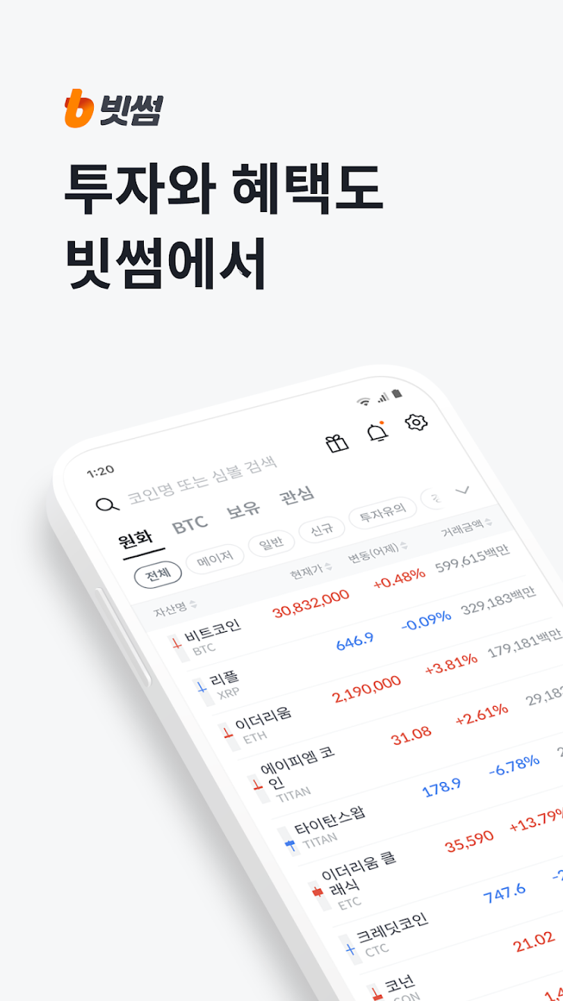 빗썸은 국내 원화마켓(실명계좌) 기반으로 가상자산을 거래할 수 있는 거래소 앱입니다. 거래 알림·자동주문 같은 편의 기능과 함께, 거래 시 수수료 일부를 마일리지로 적립해 포인트처럼 활용할 수 있는 구조를 내세워요. 보안 인증/보호 정책과 출금 관련 규정 안내도 앱에서 확인할 수 있습니다. 친구초대 이벤트는 초대받아(추천코드 입력) 가입하면 5만원을 받고, 친구를 초대하면 1명당 3만원을 받습니다.