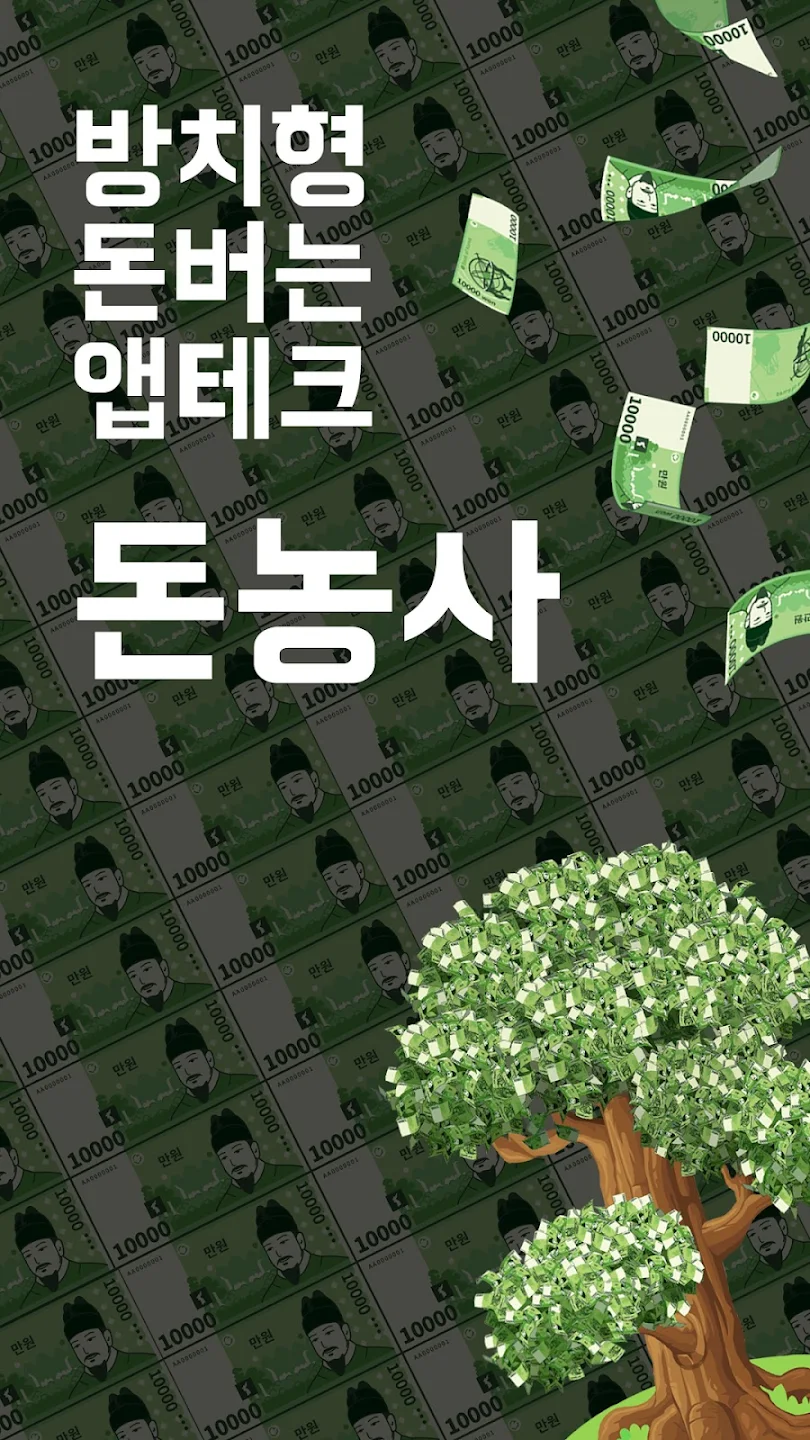 돈농사는 스마트폰을 꺼놔도 1초마다 0.1 머니가 자동 적립되는 방치형 돈버는 리워드 앱이에요. 걷기·게임·설치형 미션을 하지 않아도, 앱을 켜두지 않아도 시간이 흐르면 화면 속 “돈나무”에서 머니가 계속 생산되고, 사용자는 가끔 들어가서 수확만 해주면 됩니다. 적립된 머니는 앱 내 상점에서 스타벅스·맥도날드·이마트·파리바게뜨 등 브랜드 기프티콘, 네이버페이 포인트·문화상품권·편의점 모바일 상품권, 현금 이체(환전)로 교환할 수 있어요.