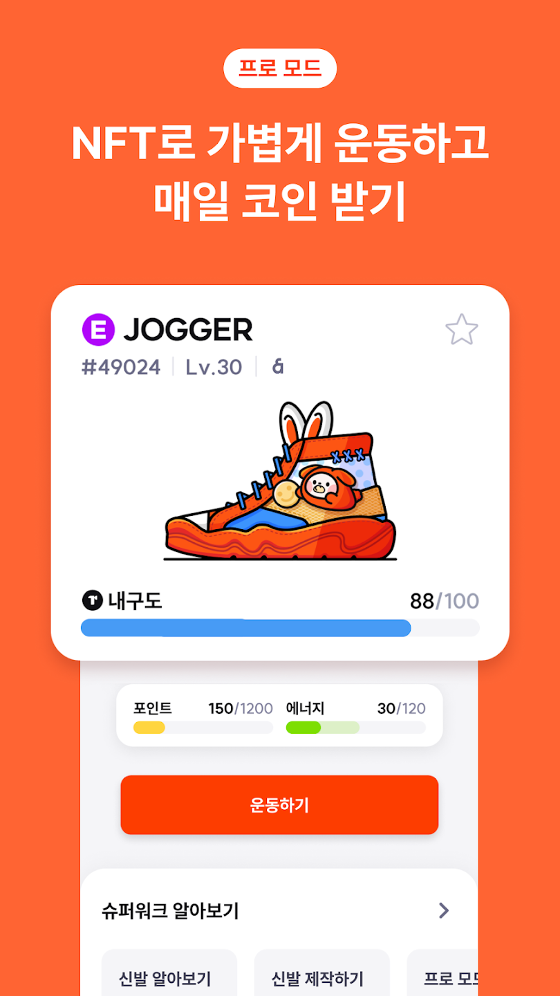 만보기처럼 포인트를 모으고, 신발 NFT를 사면 코인과 리워드를 받을 수 있는 블록체인 기반 걷기